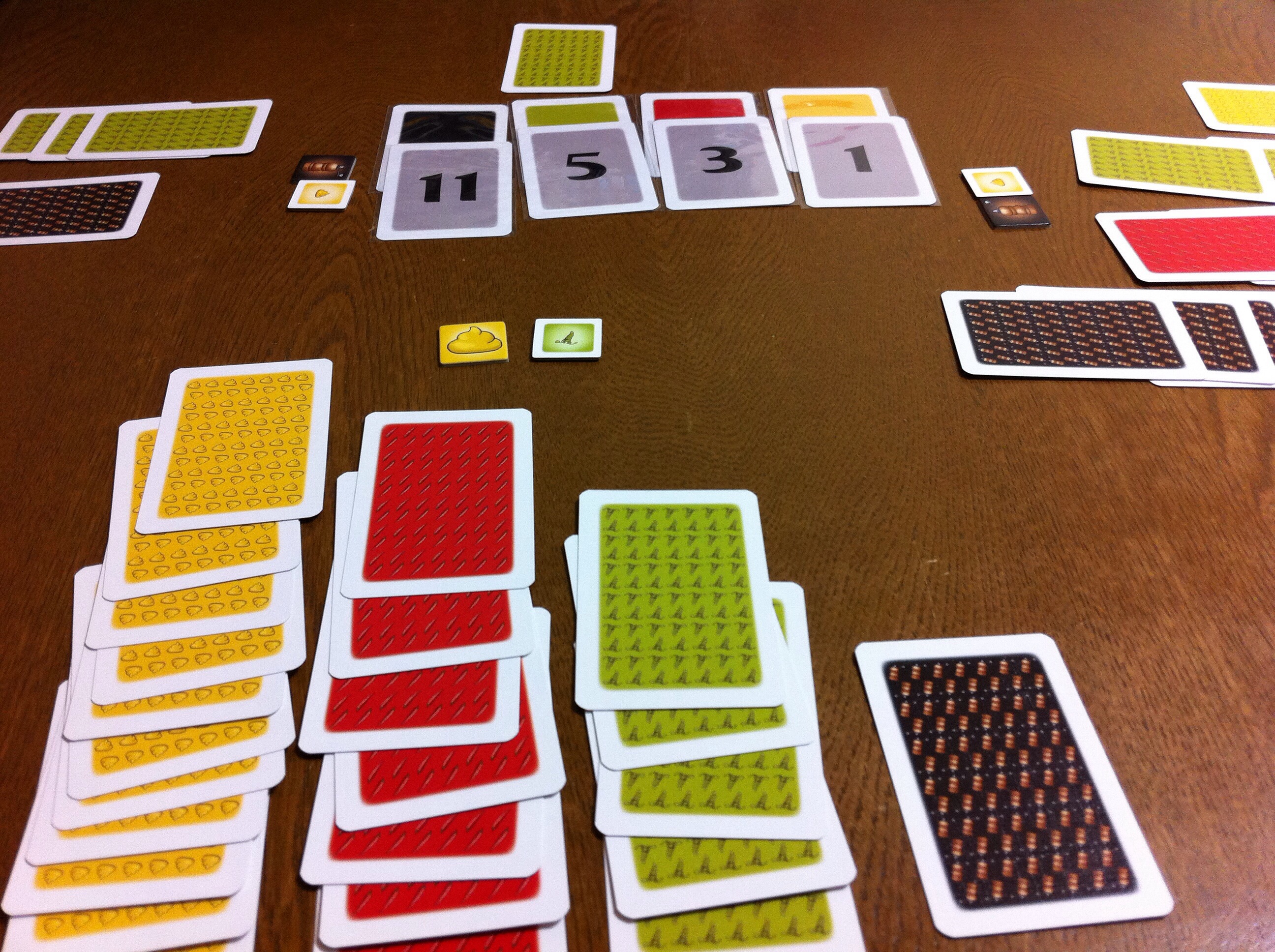 スタートアップの図。ちなみに、テーブル中央にある黄色いタイルのイラストは、ウ◇チではないです。マスタードです。はい。