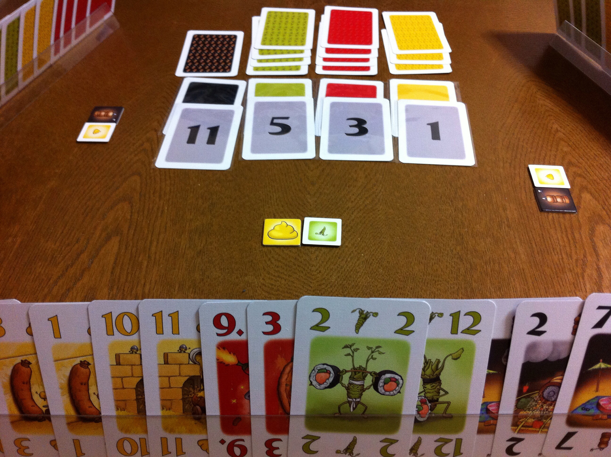 箱:カードに唐辛子が突き刺さっているという衝撃的な箱絵の小・・・中?箱。ゲームの内容は、ビッド式マストフォローのトリックテイキングゲームです。