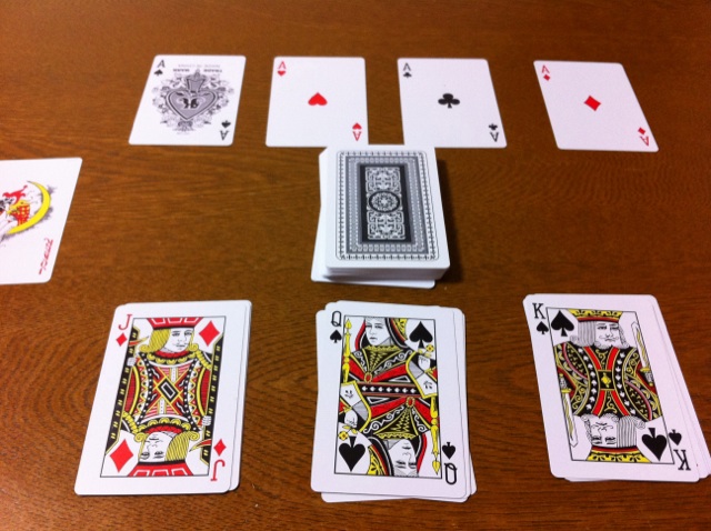 なお、3人プレイでは、余ったQ、Kは、誰も中身を見ないようにして一つにまとめ、ゲームから除外します。