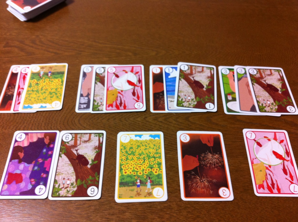 ↓初期配置。ちなみに、カード一覧表はオシノのお手製なので、