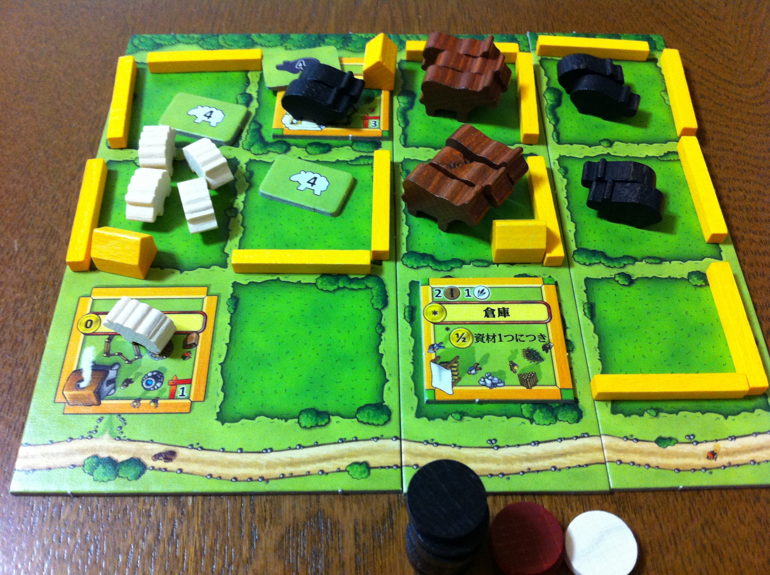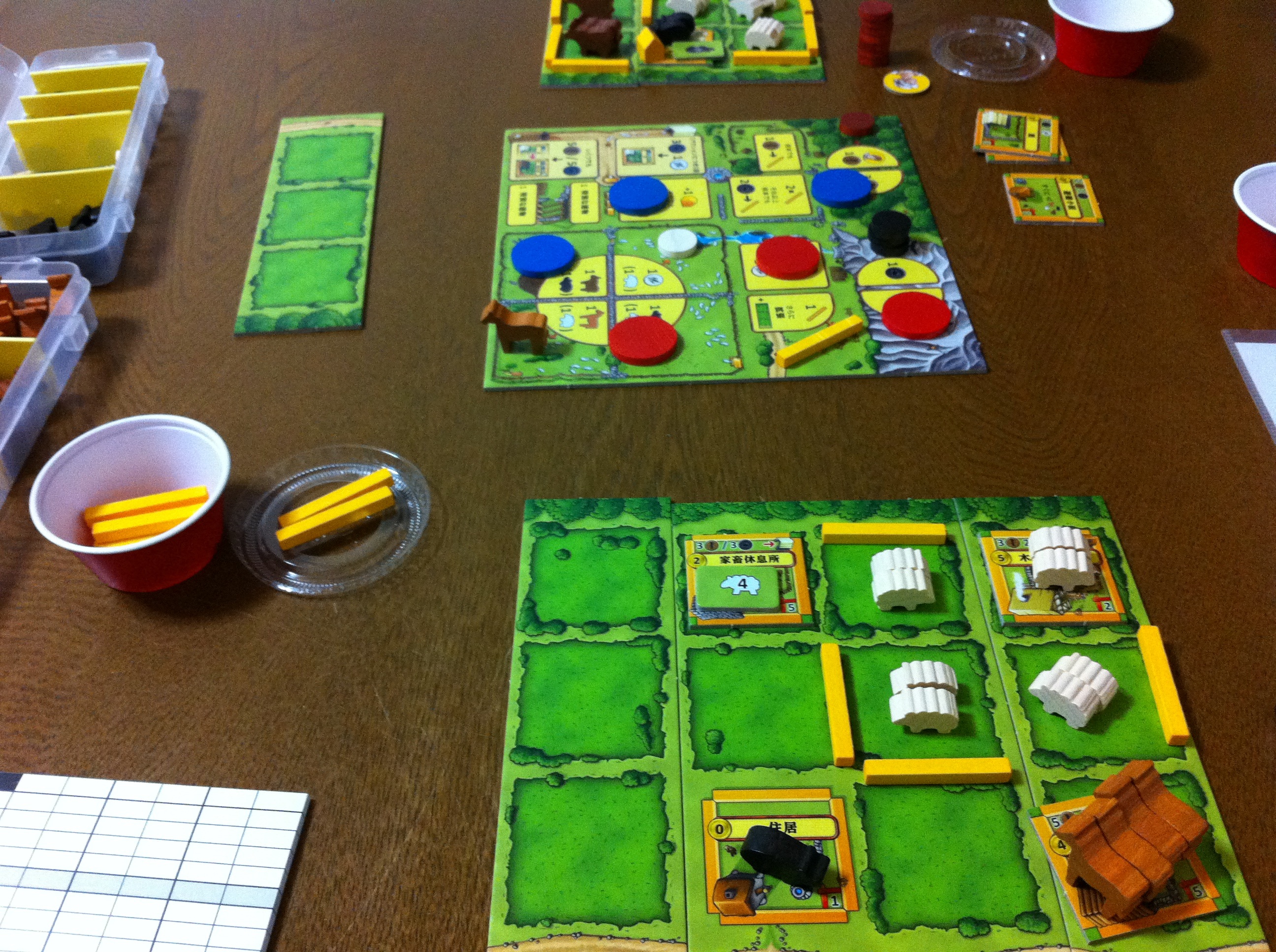 ゲームの途中の図。基本的にはアグリコラ。でも、微妙に何か違うフタリコラ。