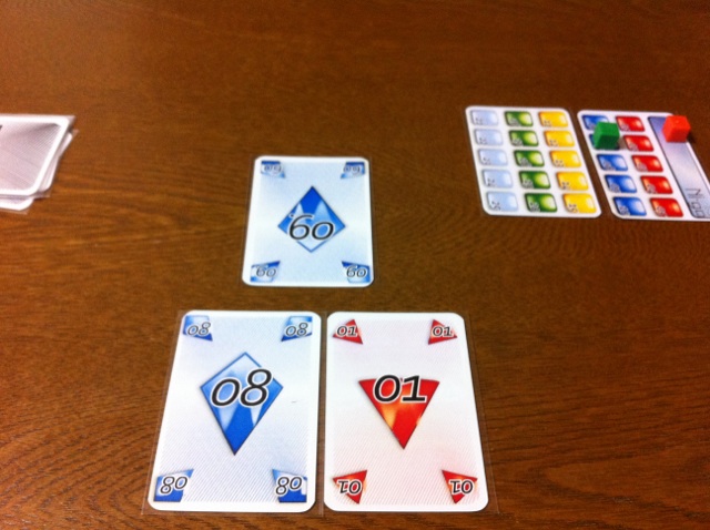 スタートアップの図。相手の指定した数字と数字の隙間を狙って、カードを通す/防ぐゲームです。