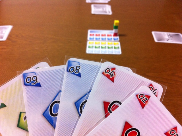 自分の持ち色のカードを全て裏返すかゲームから除外したら勝ちです。