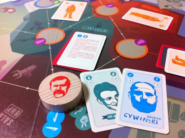 デッキビルドなのですが、特殊なテキストが一切なく、ひたすら「圧縮」しよう!というゲーム。ちなみに、プレイヤーが何人いても、ヴァウェンサさんは一人(木のコマ1つ)です。