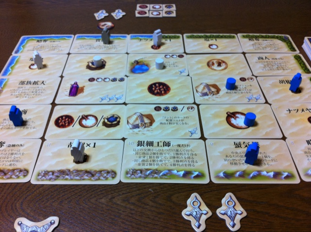 ゲーム終了の図。集めた部族カードの配置の仕方によって、勝利点が変化します。なお、1点や2点の差で負けてしまうことがけっこうあります(涙
