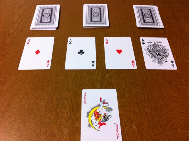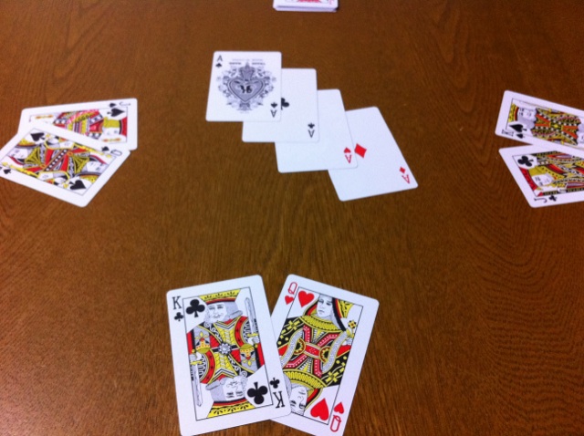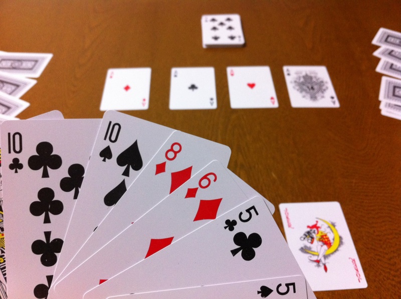 もし、数の合計が同じ場合は、自分の出した2枚の中で、より序列の高いカード1枚で見比べ、相手よりも高い序列のカードを出したプレイヤーが勝利します。