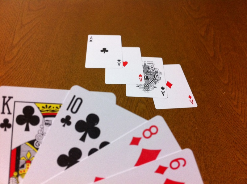 次に、同数だがより高い序列のカードを出し、さらに数も上なのはouなので、