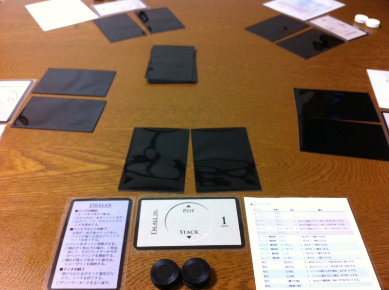 プレイヤーは、お互いの手札が見えない程度の距離で、テーブルを囲むように座ります。