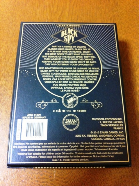 タグ:ボードゲームのレシピ、ゲーム検索、あ行あ、アラン・R・ムーンのブラックスパイ、トリックテイキング、おまけのコースター付、かなり古いゲーム(1981年初版、1990年リメイク)、