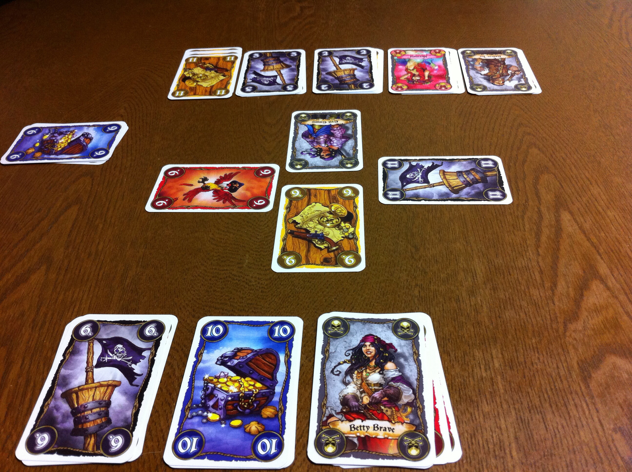 スタートアップの図。場から札を集めていき、早い者勝ちで様々なセットコレクションをつくるゲームと言えます。