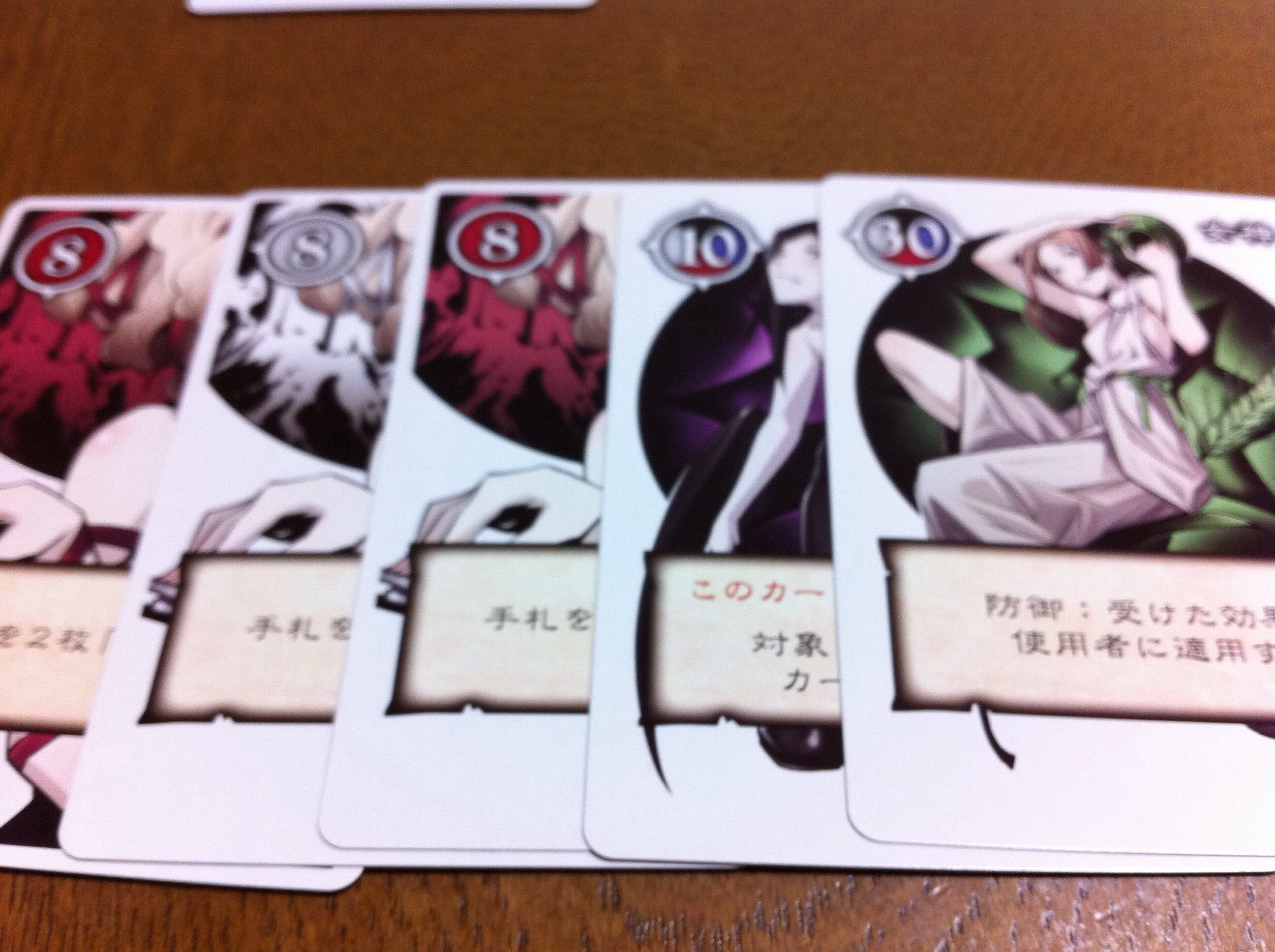 「勝負!」後の、親から見た画像。今回、選んだ札は「五」でした!そして、親から見て右のプレイヤーが見事、予想を当てています!!なぜ、バレたし(汗