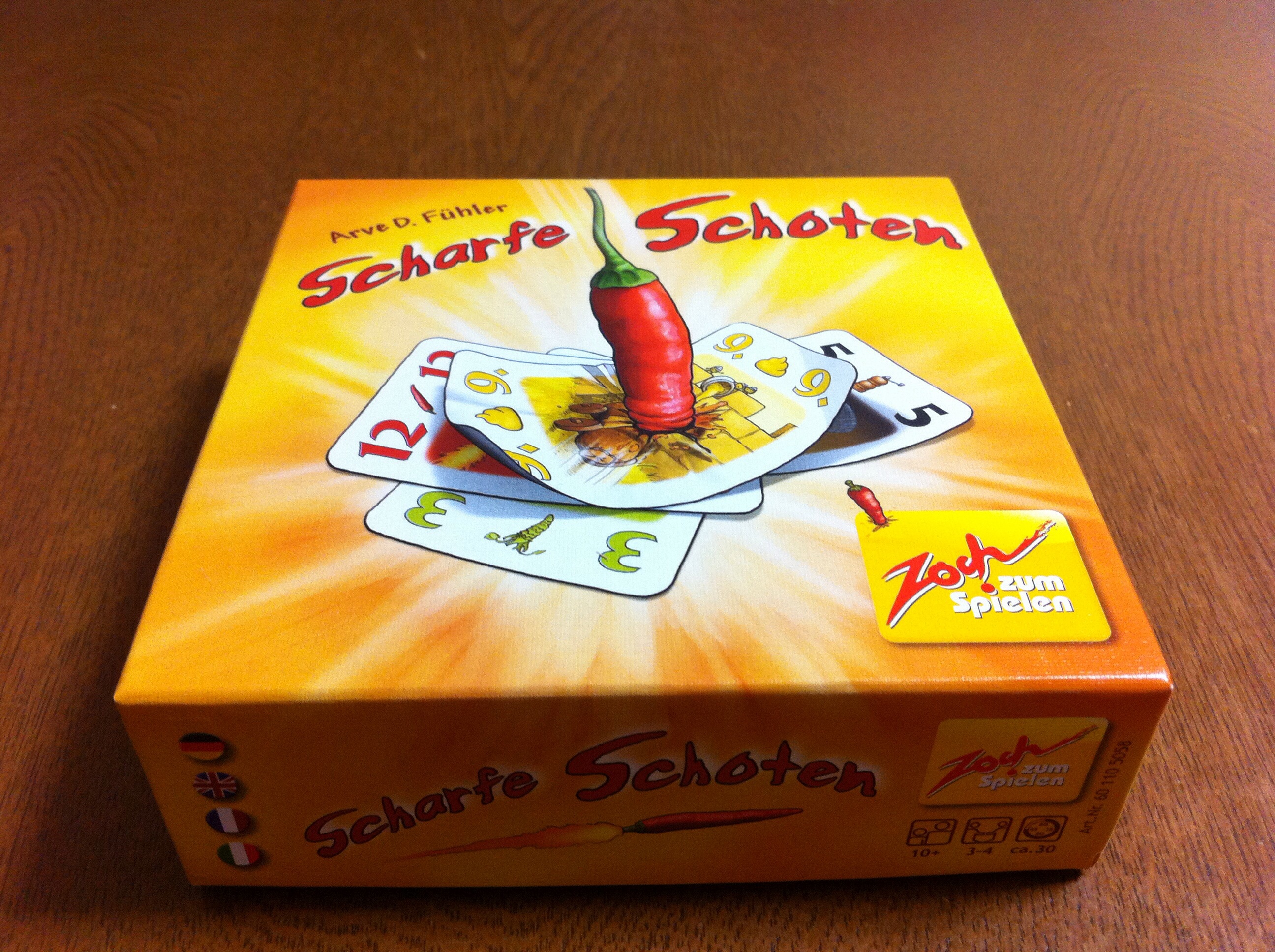 箱:カードに唐辛子が突き刺さっているという衝撃的な箱絵の小・・・中?箱。ゲームの内容は、ビッド式マストフォローのトリックテイキングゲームです。